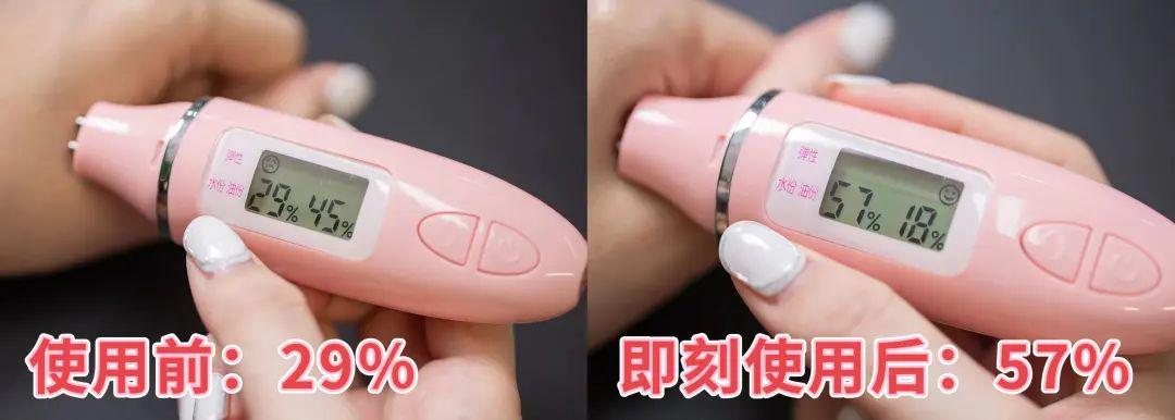 我们在虎口处进行了水分测试,水分直接增长了28%!