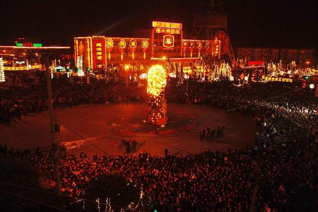 晋北大年初一早上,凌晨放“开门炮”后,各家各户都要烧旺火。清乾隆《大同府志》:“元旦垒炽热炭于门,如浮图状,名曰旺火。”清道光《大同县志》记载:“元旦家家凿炭伐薪,磊磊高起状若小浮图,及时发之,名曰旺火。”清同治《河曲县志》记载:“上元前后三日,街巷燃灯爇(ruo)石炭于门首,谓之火龙。”“火龙”即晋北旺火。《偏关县志》记载:“垒旺火,除夕各家院内均要垒火塔,旺火贴为‘旺气冲天’,深夜三四点,要点燃旺火响炮、敬香、敬表、敬供接神。”人们还要用树木、柴草、煤炭,架起旺火,再置以柏枝,接神后由家里的男子点燃,也有的地方是点燃院内火炉,俗称“年火”。民国《临汾县志》载:“‘元旦’夙兴,燔柏叶或焚束薪,名曰兴旺火。