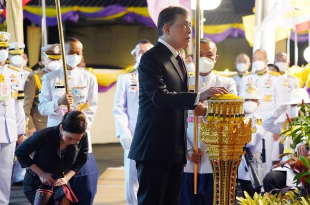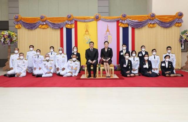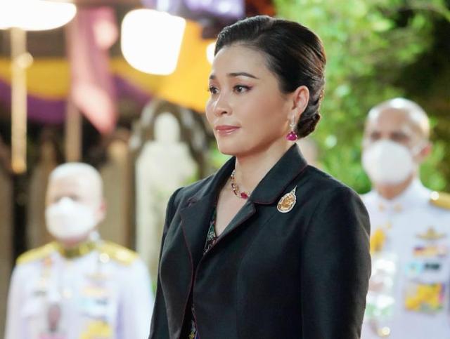玛哈·哇集拉隆功身穿纯黑西装,头发也染得乌黑,整个人瞬间年轻了不少。倒是苏提达依旧唯唯诺诺,跟在泰王身后宛如小跟班,一点王后的架子都没有。