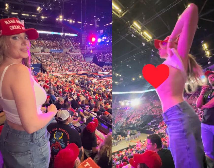 当特朗普发表演讲时,一位名叫艾娃·路易斯 (Ava Louise)的女士引发了轰动,以至于她身边的人都无法专心听前总统说话了。