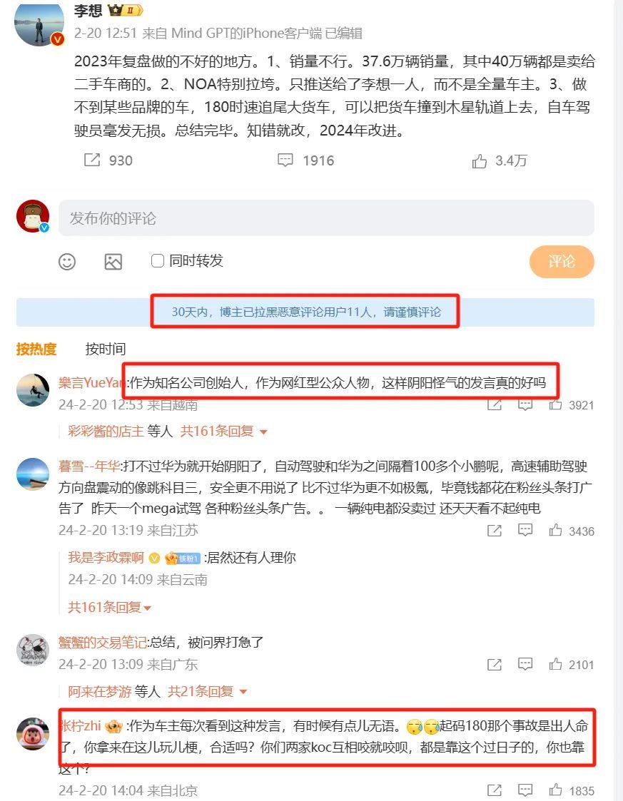有网友称,李想作为网红公众人物,这样阴阳怪气的发言真的好吗?甚至有网友还说道,起码180那个事故是出人命了,你拿来在这儿玩梗,合适吗?