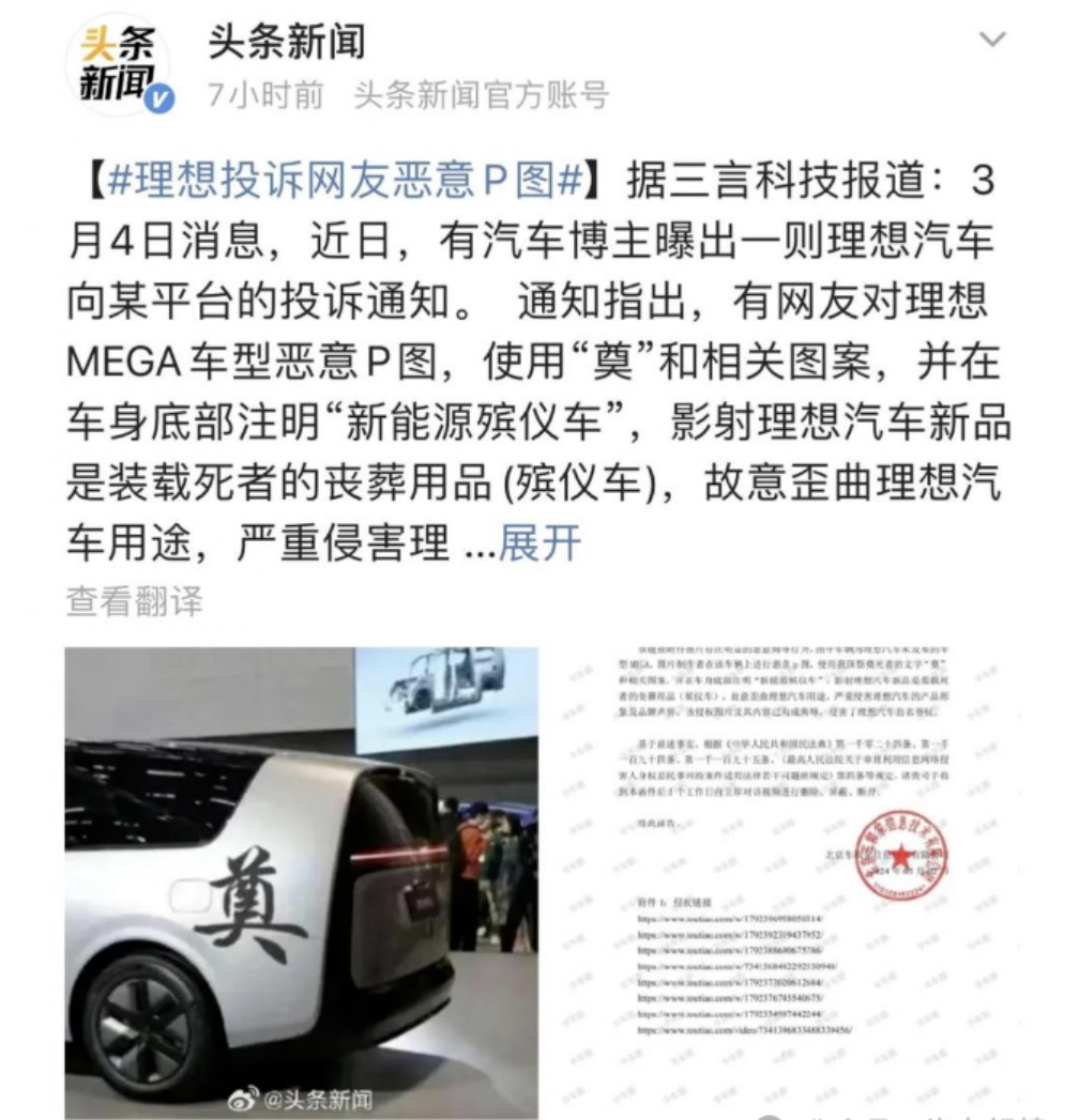 如果认为上述仍是正常的营销范畴,那么,近日理想MEGA被恶搞为“棺材车”的P图事件显然是针对该车的一次恶意攻击,事态愈演愈烈,逐渐滑向无可挽救的悬崖边缘。