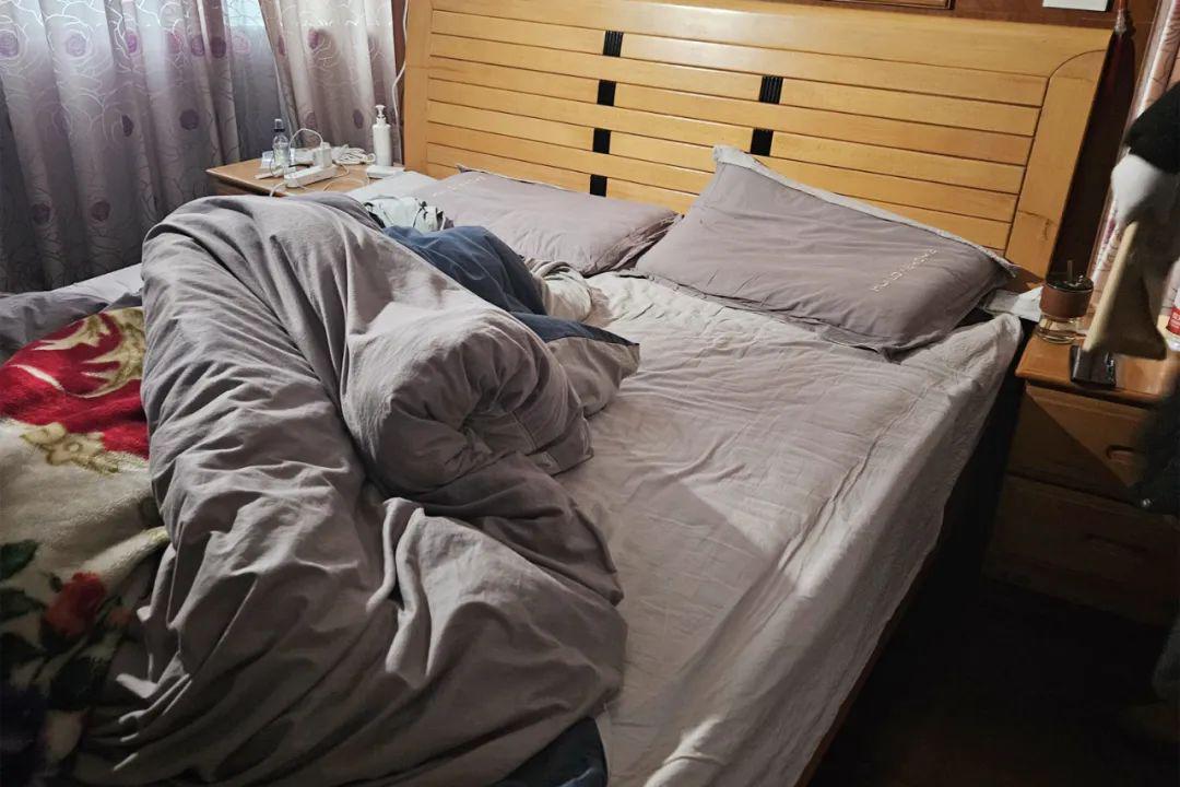 6点54分,在桐乡崇福镇某出租房内,执行人员找到了还未起床的被执行人杨某。