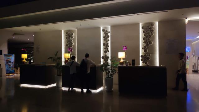 自由中心酒店前台,半夜拍的
