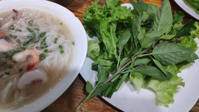 自己找了个本地馆子吃粉,至今不明白右边那一棵是什么草