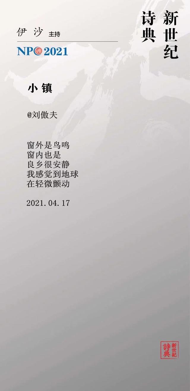 黄平子:“窗外是鸟鸣”,这是窗外的动,更是窗外的静。“窗内也是”,这是窗内的动,更是窗内的静。“良乡很安静”,这是整个良乡的静。“我感觉到地球/在轻微颤动”,这是整个地球的静。地球静不?当然不静。良乡静不?当然不静。安静的,只是“我”。陶渊明《饮酒·其五》云:“结庐在人境,而无车马喧。问君何能尔?心远地自偏。”刘傲夫的静就是这种静。傲夫有福,有了良乡。良乡有福,有了傲夫。2021年8月28日10点32分