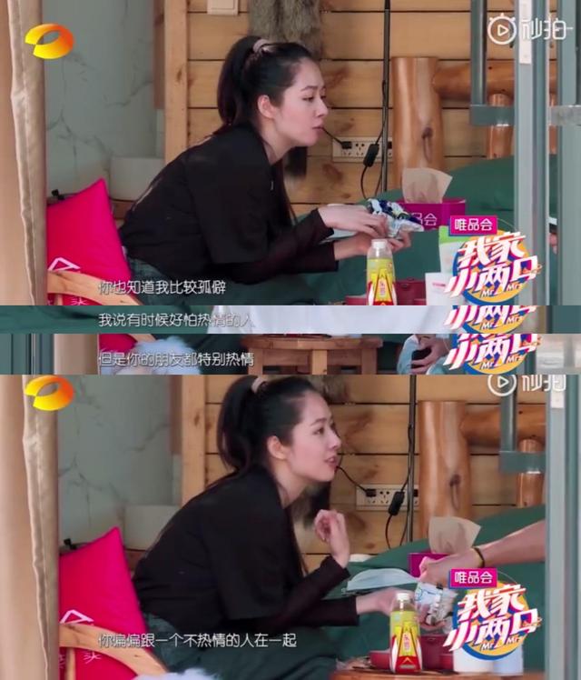 闲时小两口聊天,她似乎对自己有些焦虑:“你也知道我比较孤僻,我说有时候好怕热情的人,但是你的朋友都特别热情,你偏偏跟一个不热情的人在一起。”