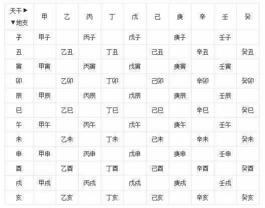 所谓「甲」,指六甲。天干共有十个,地支十二个,原本天干地支的组合应为120组,但实际上只有60组,见下图