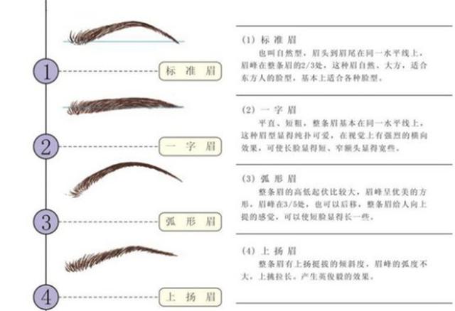眉形即眉毛的形状。大约分为标准眉、一字眉、弧形眉、上扬眉等。