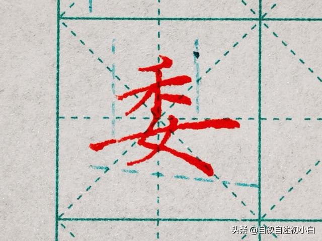 地载结构“委”字,长横托举上部“禾”,女字底与上部距离尽量做到最小,上窄下宽,女字底撇画短点画长