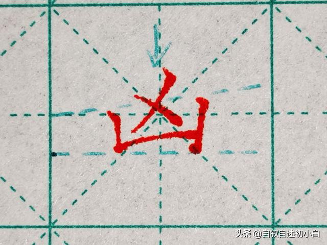 下包围结构的“凶”字,撇点交叉书写且靠近底部,注意竖画书写,左短右长、左低右高