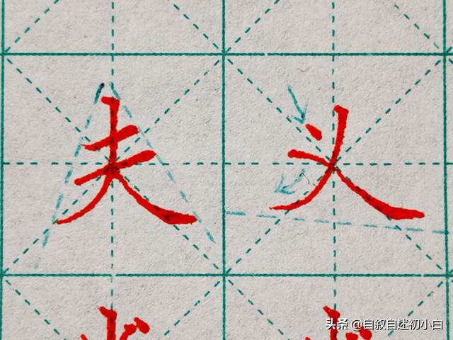 接下来我们来看看笔画相交的字体,辟如“夫、义”二字