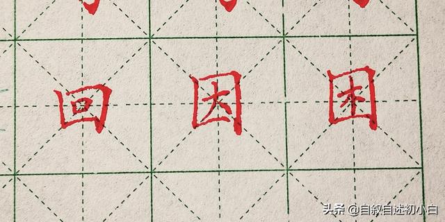 全包围结构中,被包围结构一般书写居中,但注意左上角和右下角有时会体现出字体的灵动性,会出现开口书写的模式,根据字体可选择是否开口书写。