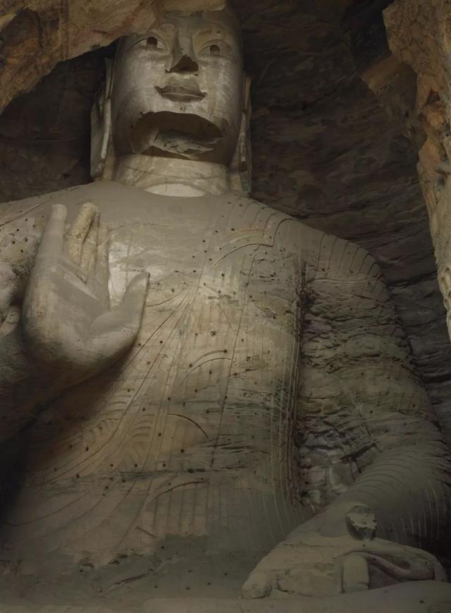 我们知道,昙曜在云冈开凿五窟,造价只有皇家才承担得起。这样的耗费,昙曜怎么敢敷衍一窟?所以这个主尊一定是个非常重要的人物。