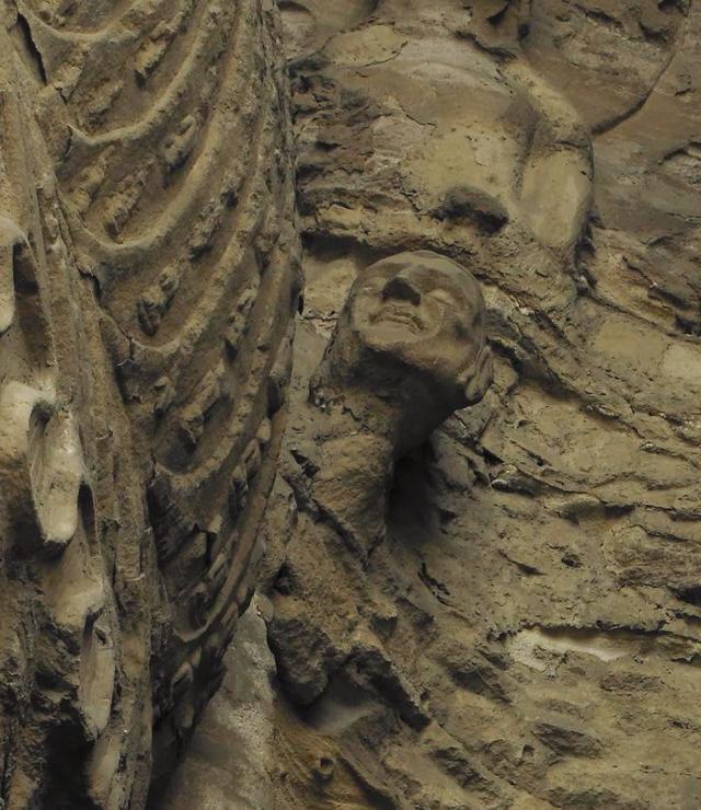 我们知道,太武帝拓跋焘灭佛时,将高僧玄高砍头,而无量寿佛的左侧,恰恰有一个有头无身的头像,表情欣慰而从容,由此我们可以判定无量寿佛左右的僧人群像,是当年的殉难僧团,只是我们除了玄高,无法判断其它僧人具体是何者。昙曜当年一定有名单,所以才能再现每个僧人的特点。这组殉难僧团群像石雕,是大乘佛教“身施”的经典,是杰作,实在应该复制下来,单独陈列,成为中国佛教艺术经典。