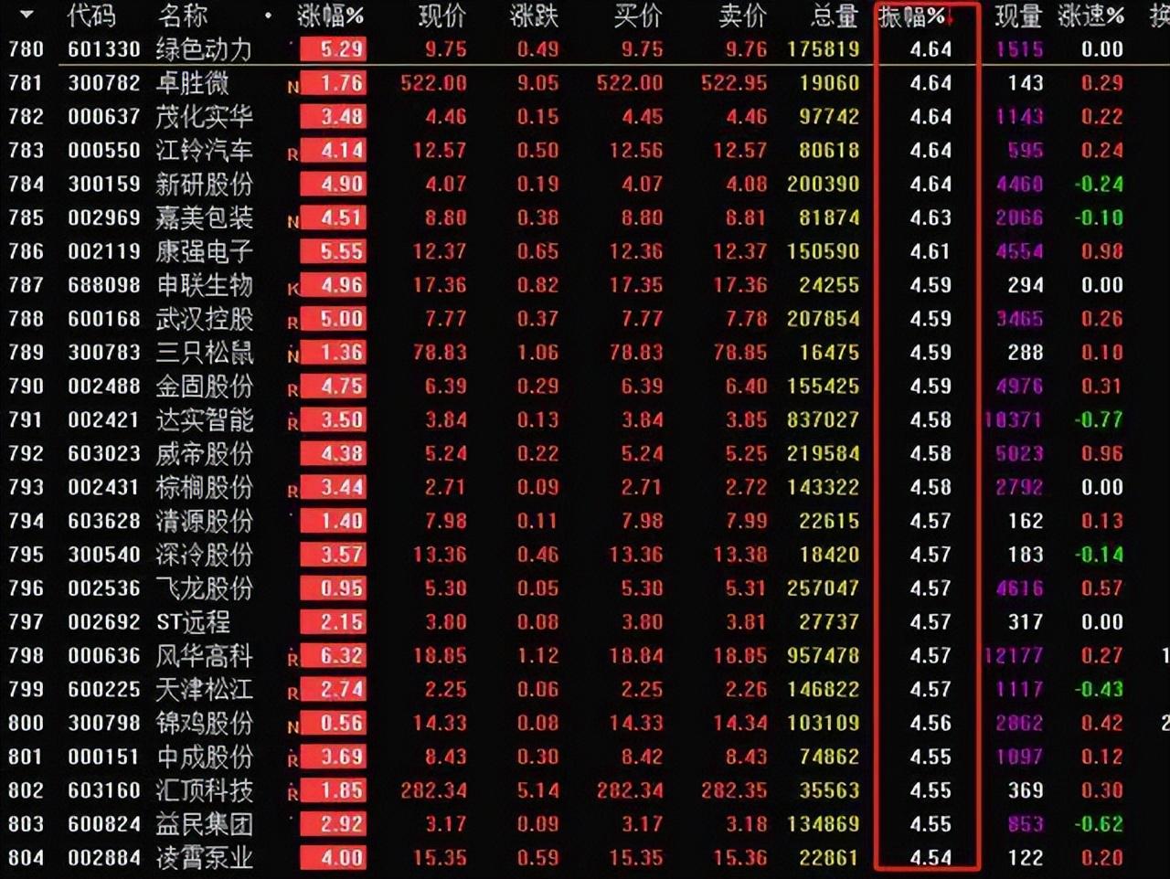 为什么要强调振幅实体呢,因为有些股票,可能向下大幅振然后又向上振,走势很混乱。故而这类股要剔除。
