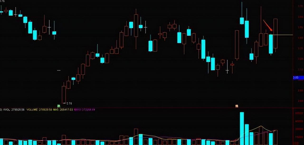 2、前一个交易日有一根大阴线,当K线上股票吞没该阴线后更容易涨停。如下图当股价在K线上吞没前一日的阴线后更容易出现涨停。观察所处分时图的位置,等待买点出现。