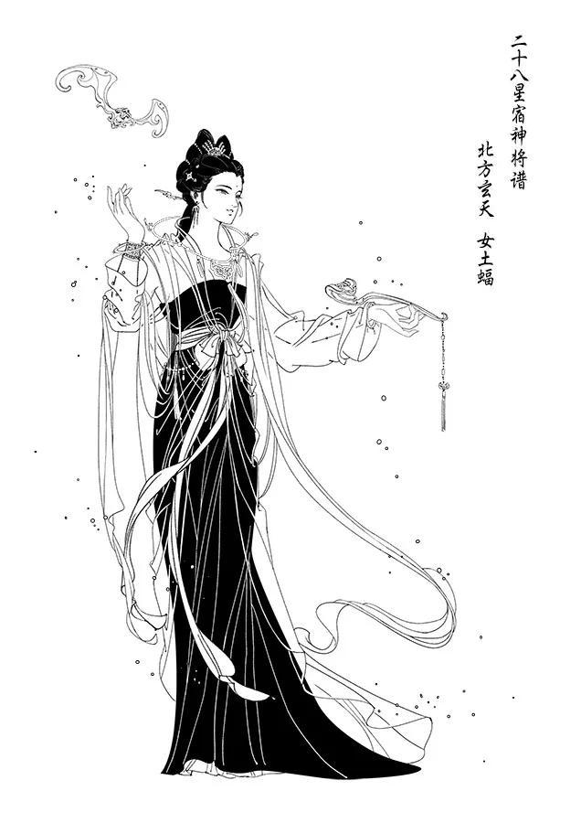 女土蝠,象征癸从官。其星群组合状如箕,亦似“女”字,古时妇女常用簸箕颠簸五谷,去弃糟粕留取精华,故女宿多吉。