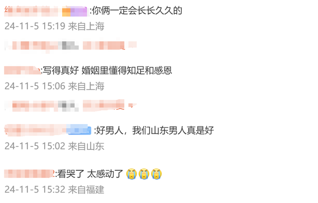不少网友表示被郭晓东的文字感动,祝福二人长长久久。