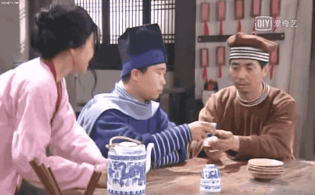 进了客栈之后,掌柜的给老邢倒水,他一把夺过了茶杯,故意让师父用粗瓷碗喝水。