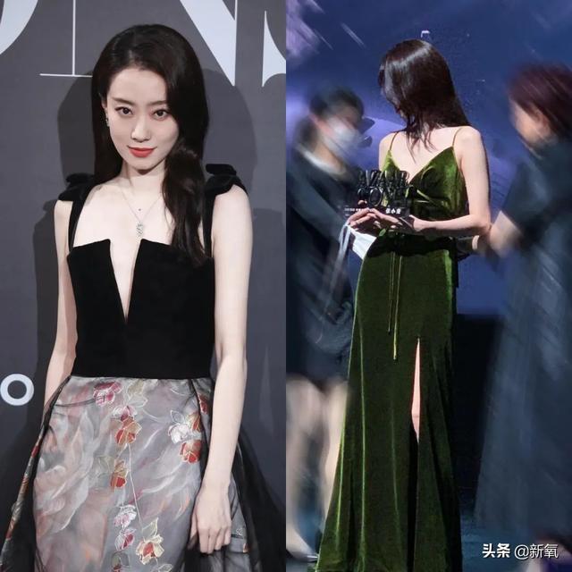 两人的硬件配置很像,窄方脸+媚眼+匀称瘦高的身架。乔欣凭借取长避短的妆容和凸显身材的礼服实现美貌翻盘。170大高个张小斐也用身材打造夺目氛围。